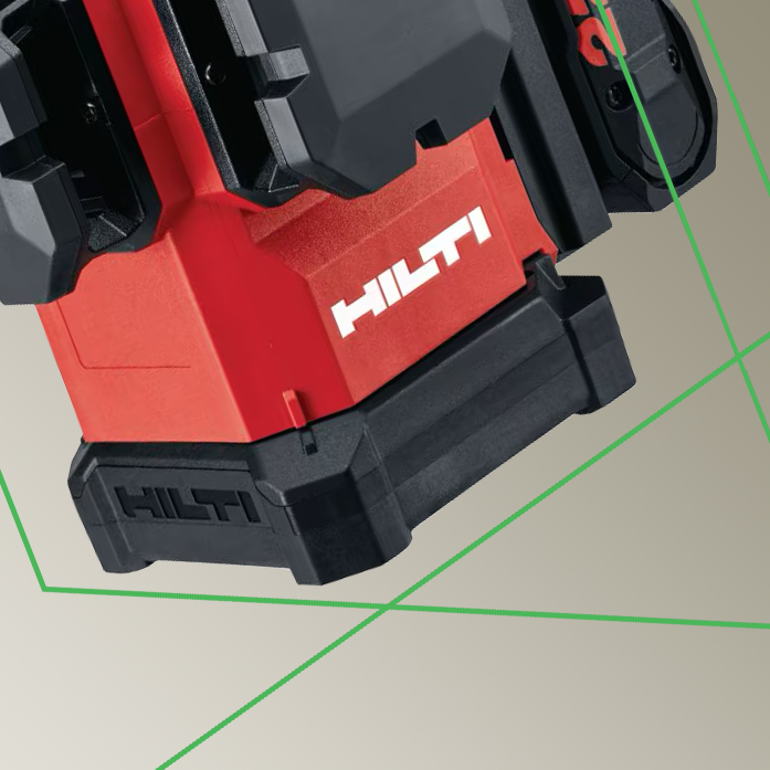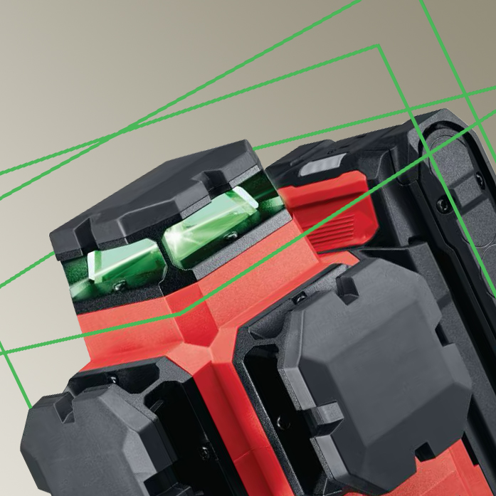 - Drei 360-Grad-Laserebenen (eine horizontale und zwei vertikale) zum Nivellieren, Ausrichten und Abstecken rechter Winkel sowie für Sanitärarbeiten mit einem einzigen Aufstellungspunkt